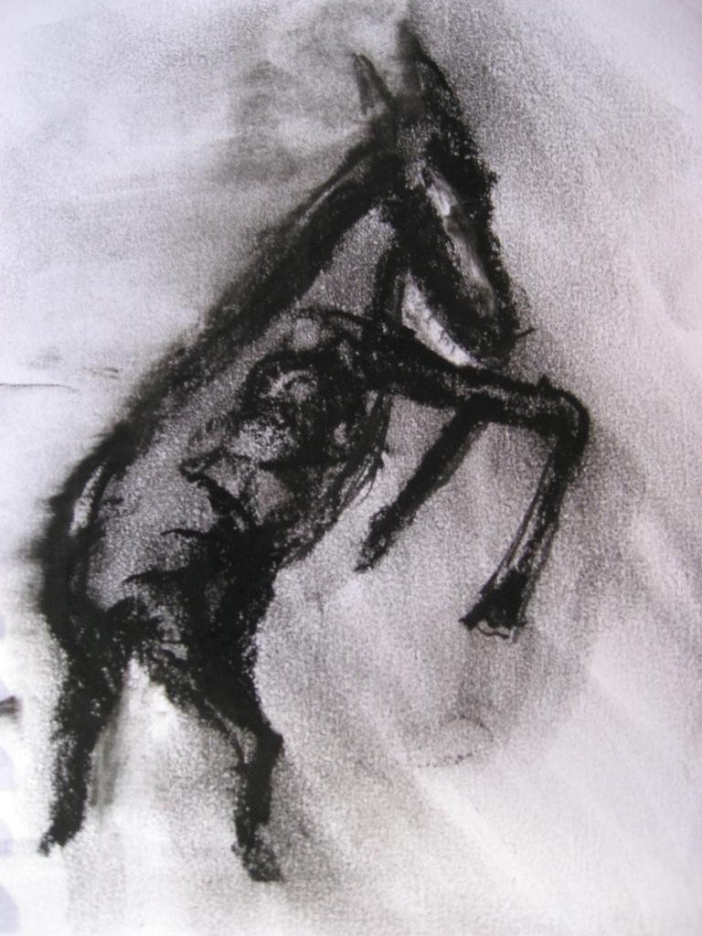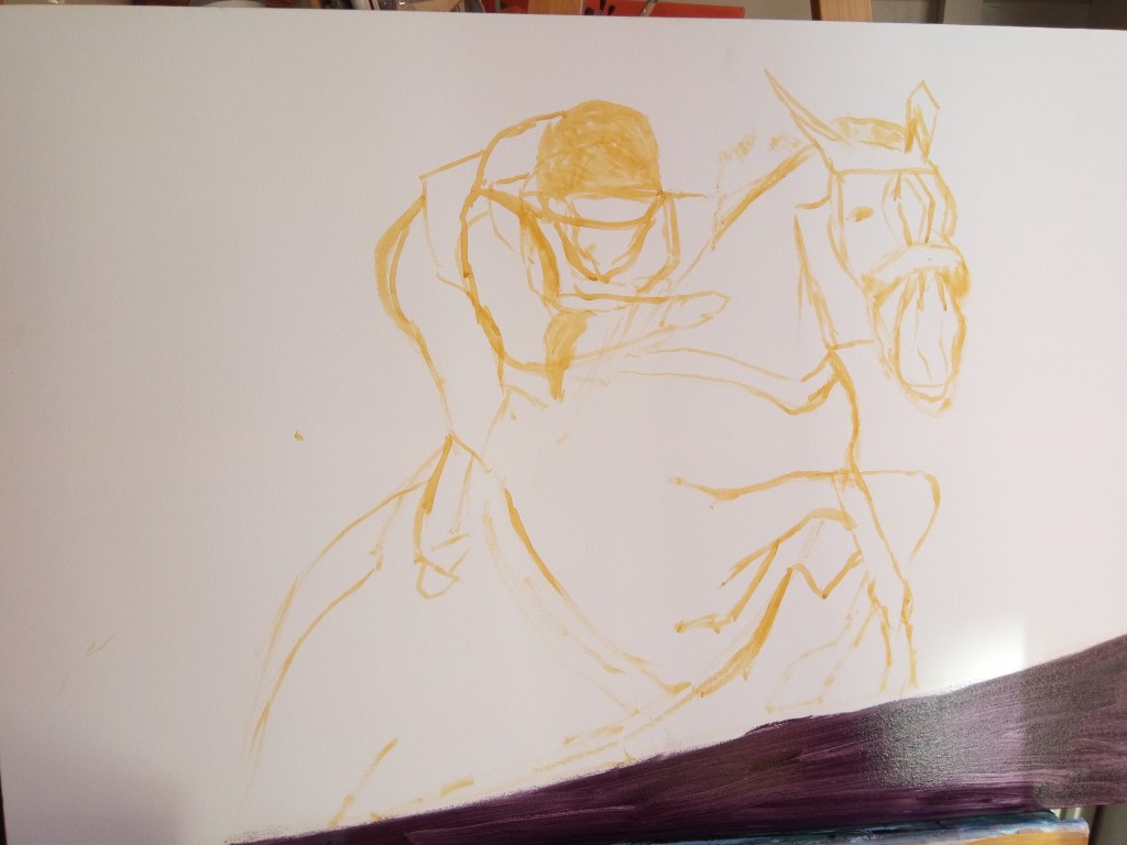 Sadlythis drawing wasn’t accurate and I found it difficult to get the horse in proportion. I do like to draw straight onto the canvas like Carravagio.