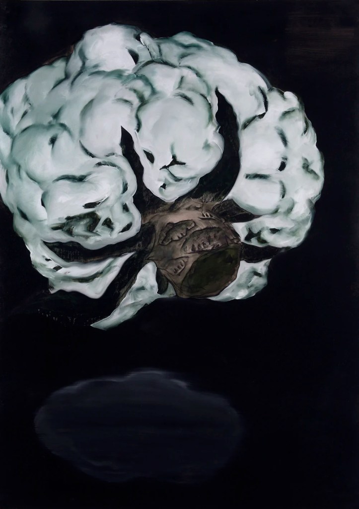 In the chapter on his work we see sketches of seeds and other images related to farming. The image above is called simply cauliflower ii and was painted in 2009. It has figure painted into the stem.