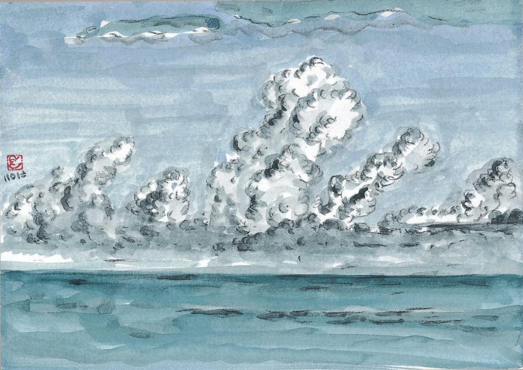This work below is titled cloud -sky and was completed in 2019. It reminds me a little of Van Gogh’s work and the brush strokes in his clouds.