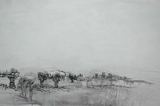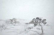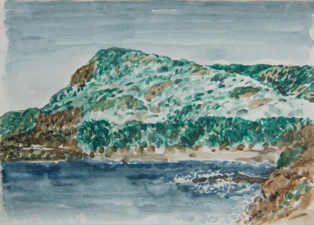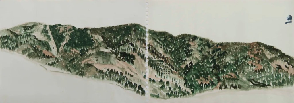 The work below is called mountains and it looks as though he’s covered two pages in his sketch book. I love how he’s captured the undulating hills.