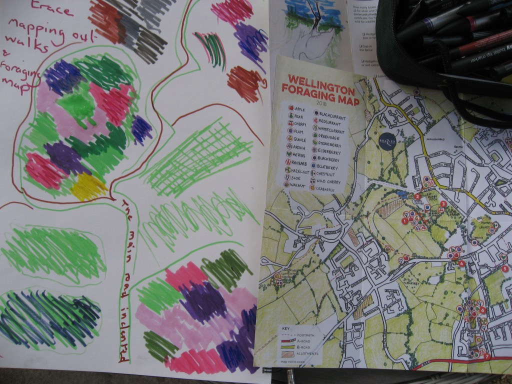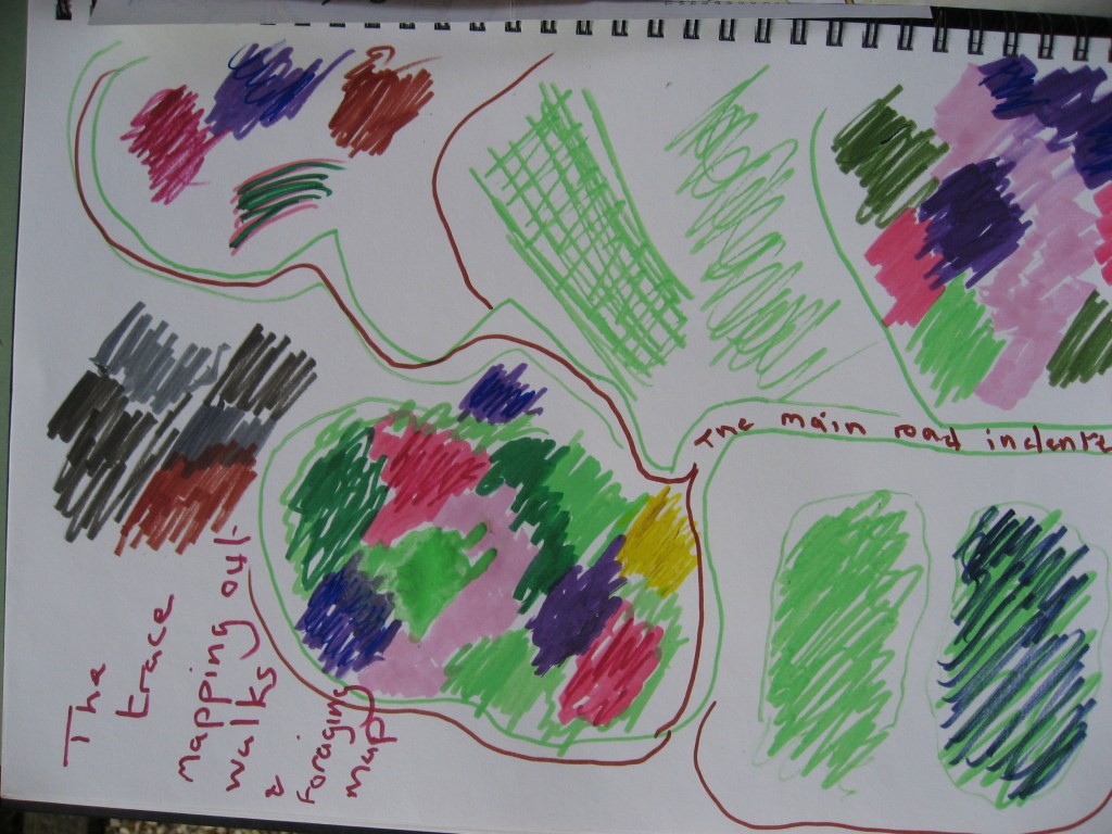 For this exercise I wanted to put some of my visual vocabulary into practice. In exercise 1 I had included my walks and the steps I take regularly in not just finding inspiration but also getting together sketches and paintings. The foraging map and the transition town have become intrinsic to my life and so is my local town. Having worked on my foraging map I wanted to use its trace and where the planted areas are to create a very seasonally coloured painting. Just as Cy Twombly captured the colours of the seasons, I want to try to capture the colours of my fruits as they change seasonally on the map. My inscriptions or traces of the fruits will be quite bold and I plan to use a large canvas with acrylic carveable paste for texture.